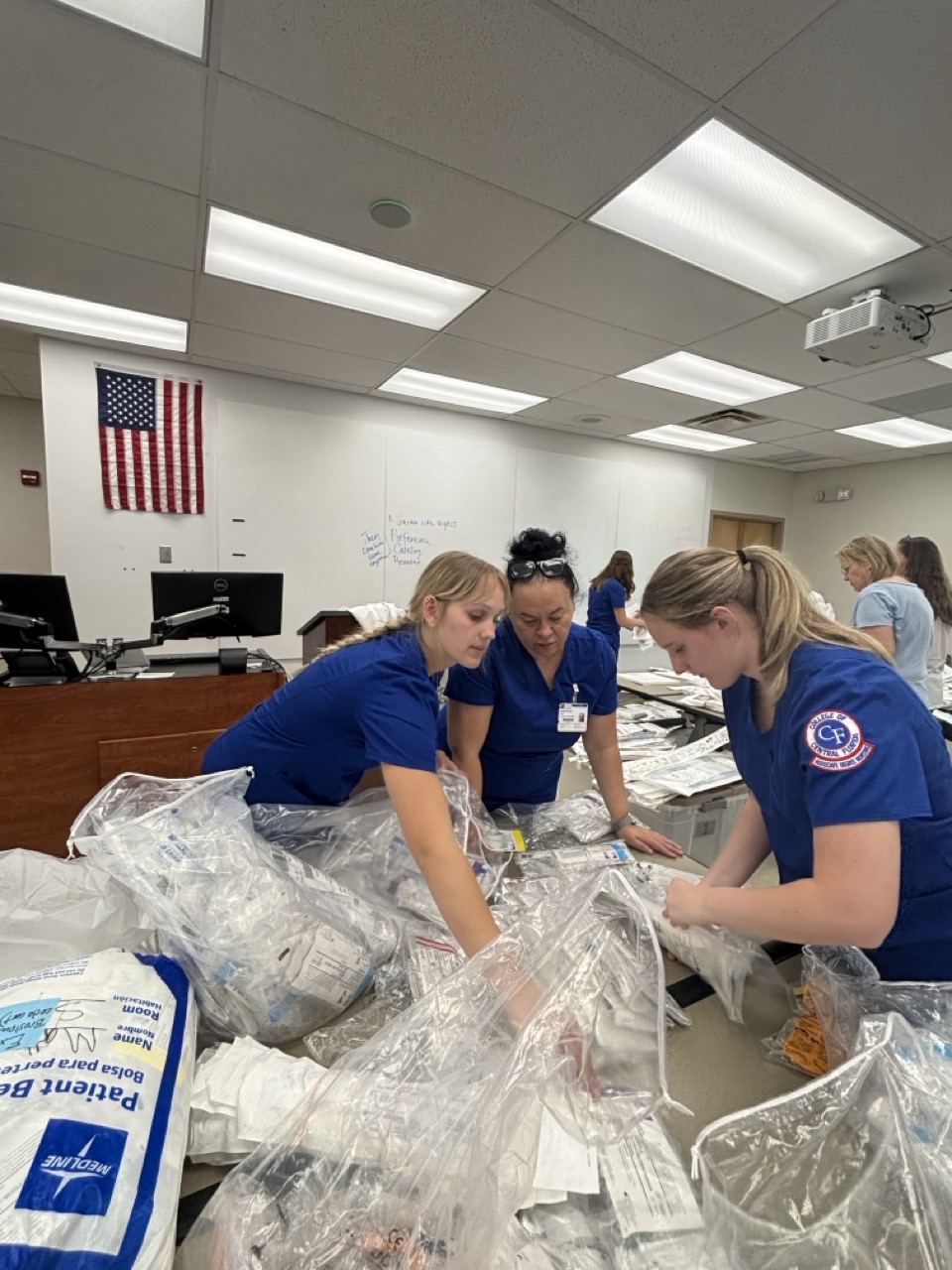 What do our volunteers do? Volunteers sort, inventory, pack, and prepare the medical surplus for shipment. Some adult volunteers mentor the many high school/college volunteers who are earning service-learning hours and gaining valuable knowledge about medical equipment, technology, and organization.